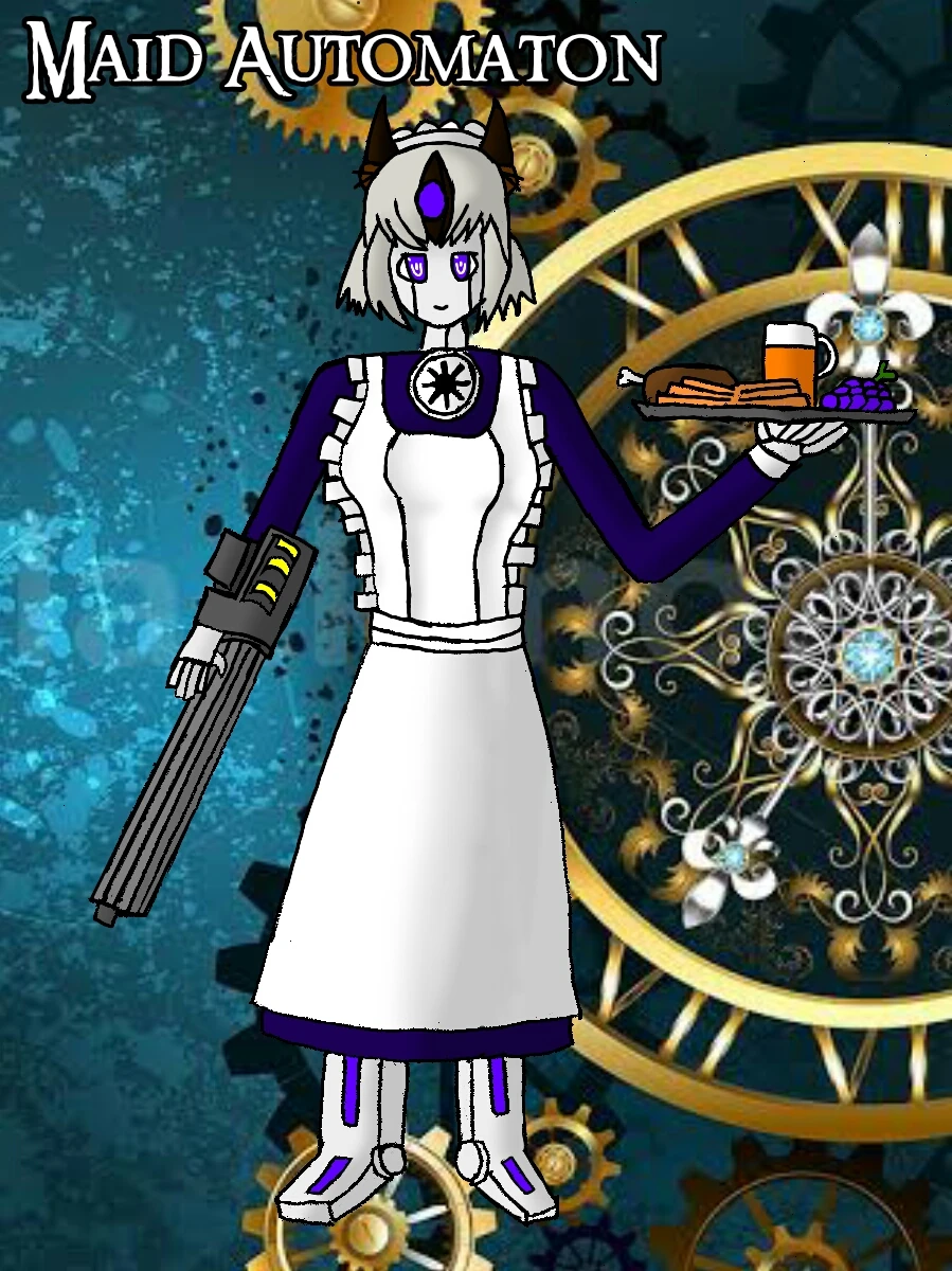 Some fanart made by me. An Automatton in 20th century maid costume. Although I don't know can I upload to the wiki or how to upload to fanart hub.