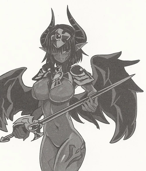 Rushing across the battlefield on hellish horses, the girls, who have long practiced swordsmanship and athletic techniques, fight on the front lines and take the greatest pride in fighting the enemy's swordsmen. The swordsmanship and spear skills they use in combat are based on the school of former Lescatie knights who became demons, including also the fantastic power of charming humans as succubi. Whether it is a light sword that moves in strokes along with a supple body, or a long and sharp heavy blade that seems to flow in the glare of light, the Dark Knight who bravely rushes into battle will have a beautiful and elegant appearance. Even executing simple sword strokes, they will have a beautiful and mesmerizing appearance, displaying attractive limbs with each gesture to charm the enemy and raise their plump flesh. Their swords are the devilish weapons, seducing the enemy in battle and completely captivating their partner's heart when the battle reaches its climax. In addition, combining superior blade skills with succubus strength, they are well versed in techniques such as reading their opponent's movements and mind, taking the enemy's sword away, and distracting the enemy from the battle. These abilities are especially acute when a demon is trying to get her husband in battle, for which she may purposely force her opponent to fight with swords, as this is their way of seducing a man and making him her husband. In addition, although each possesses an inherently strong mamono individualistic personality, they are excellent fighters in a group and cooperate easily with other monster species. However, it seems that the roots of this cooperation lie in the joint struggle for each husband.