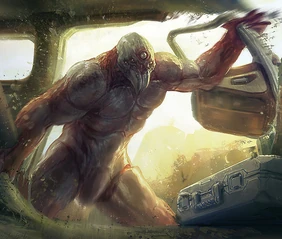 Protective armor: An external bone/keratin like armor with a layer of leathery tissue beneath it for increased protection. Resistant to various forms of attacks, physical trauma and weather elements. Can slowly regenerate over time. The armor is remarkably durable around the arms for better close-combat, similar to medieval battle gauntlets, capable of blocking or parrying attacks directly with his hands. Can absorb/deflect attacks comparable to swords (both slash and stabs), blunt force similar to hammers or maces and even bullets. However, prolonged attacks my cause the armor to slowly chip away and must be restored.