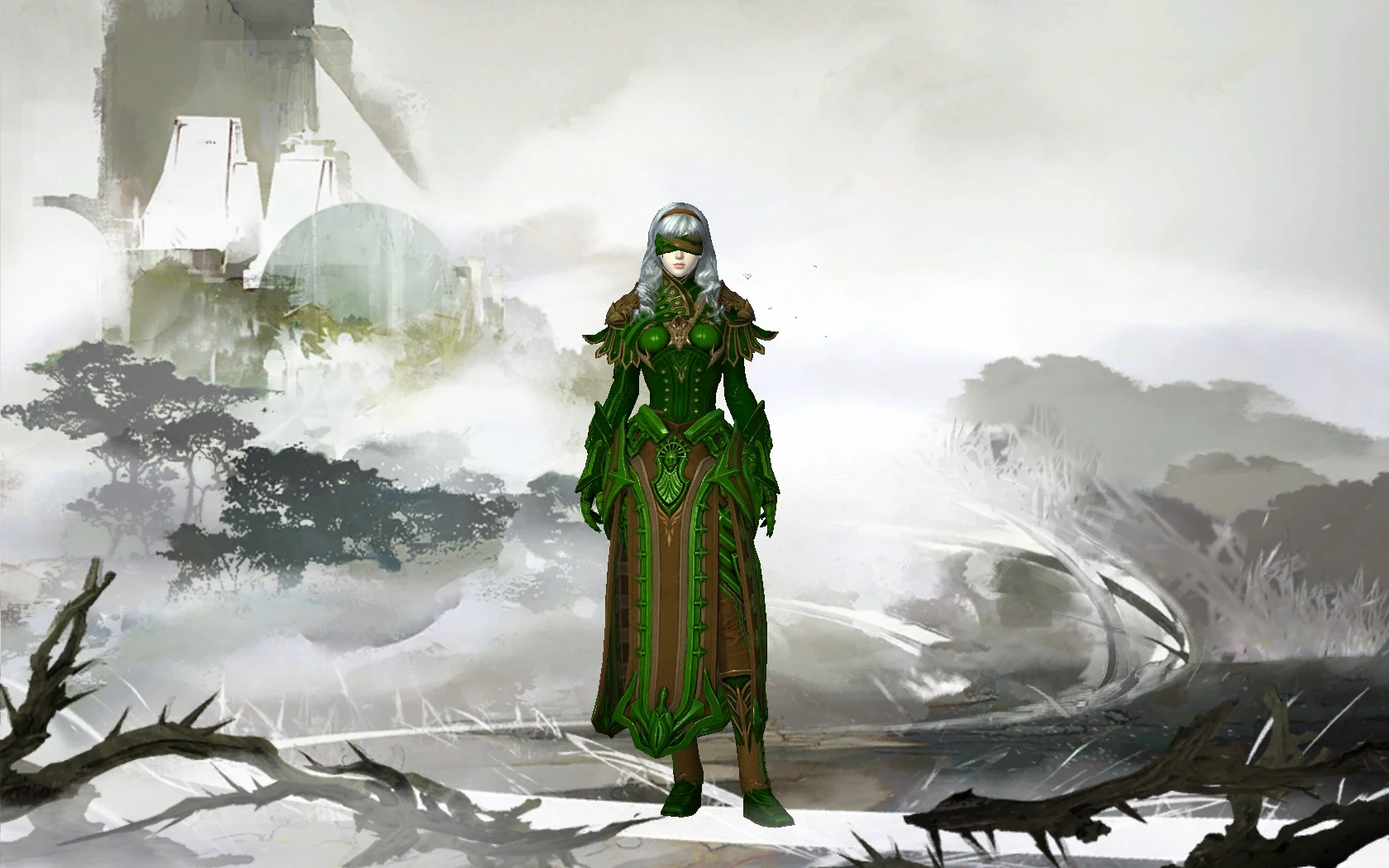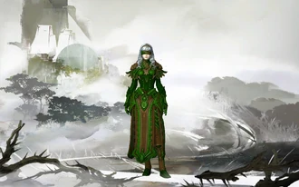 Personality: A women of few words, no one really knows how Lissen got the title of 'Baroness' in the nobility of Kryta's humans. Possibily from her dead parents who's circumstances as to why they are actually dead, remain to her. She had learned her talent of raising the dead at the same time around her parent's untimely demise and has used this gift to keep her with multiple 'friends' ever since. Since than she had kept her distance from the politics of court and rulership, only intefearing when it directly concerned her, which was almost never. Through a series of events that have made her rather uncomfortable due to talking waaaay too much, she had made it to Orr, the risen nation from the sea and the spent the rest of her days on Tyria, there. She much better enjoyed the undead to the living, even if they were still trying to kill her. During the events leading up to her in Orr, she had damaged her eyes due to one of Zhaitan's champions, Blightghast and required a special blindfold that allowed her to see like normal, whilest also functioning as a type of armor. Due to a unfortunate chain of events, relating to teleportation gates and ships. Lissen was brought to the MGE world where she resides to this day. After losing just about everyone she knew and cared about (In the events leading to Orr) and then being brought to a completely different world, her demeanor has soured significantly. The women of few words had been reduced to none, only ever talking to herself in places with no living or with her minions that haven't been affected by the demonic energy of the land. While she doesn't strive to kill, she will if provoked by anyone or anything, making her dangerous to be around for too long. She never answers questions or says anything that wouldn't make people think that she's a mute, and it appears she plans on staying that way...Until monsterized of course, but that's a can of worms that won't be opened for a while...I think.