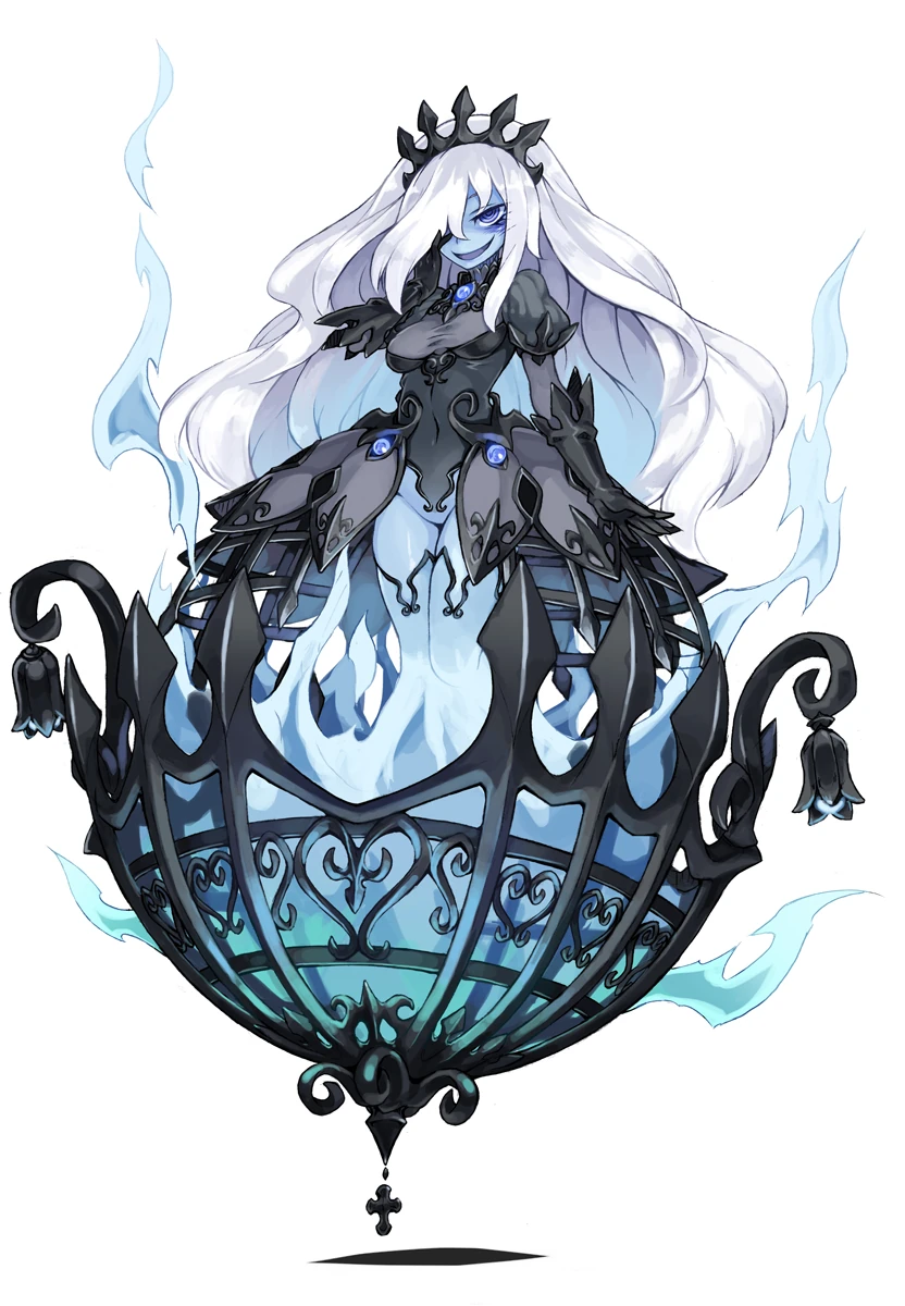 The wisp is an undead monster, the result from a fusion of demonic energy with the soul of a person that has died alone. Their bodies are comprised of raging flames of jealousy and they wear something like a cage around their body to hold the flames in. They are persistent, ferocious monsters.